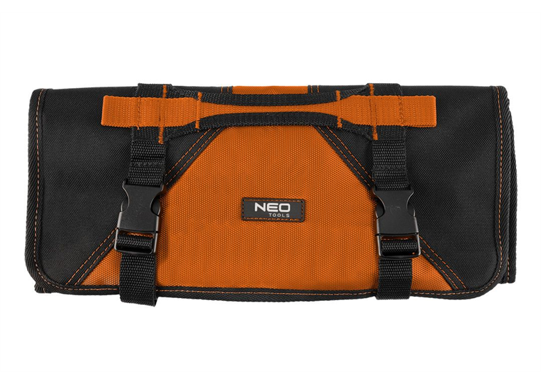 Stoffen gereedschapsetui Neo 09-890 heeft 21 vakken voor gereedschap en 1 vak dat in de lengterichting kan worden vastgezet - zo kan de gebruiker een groot aantal noodzakelijke voorwerpen meenemen. De kliksluiting beschermt tegen per ongeluk openen, en met de draaggreep kunt u het geheel comfortabel dragen.